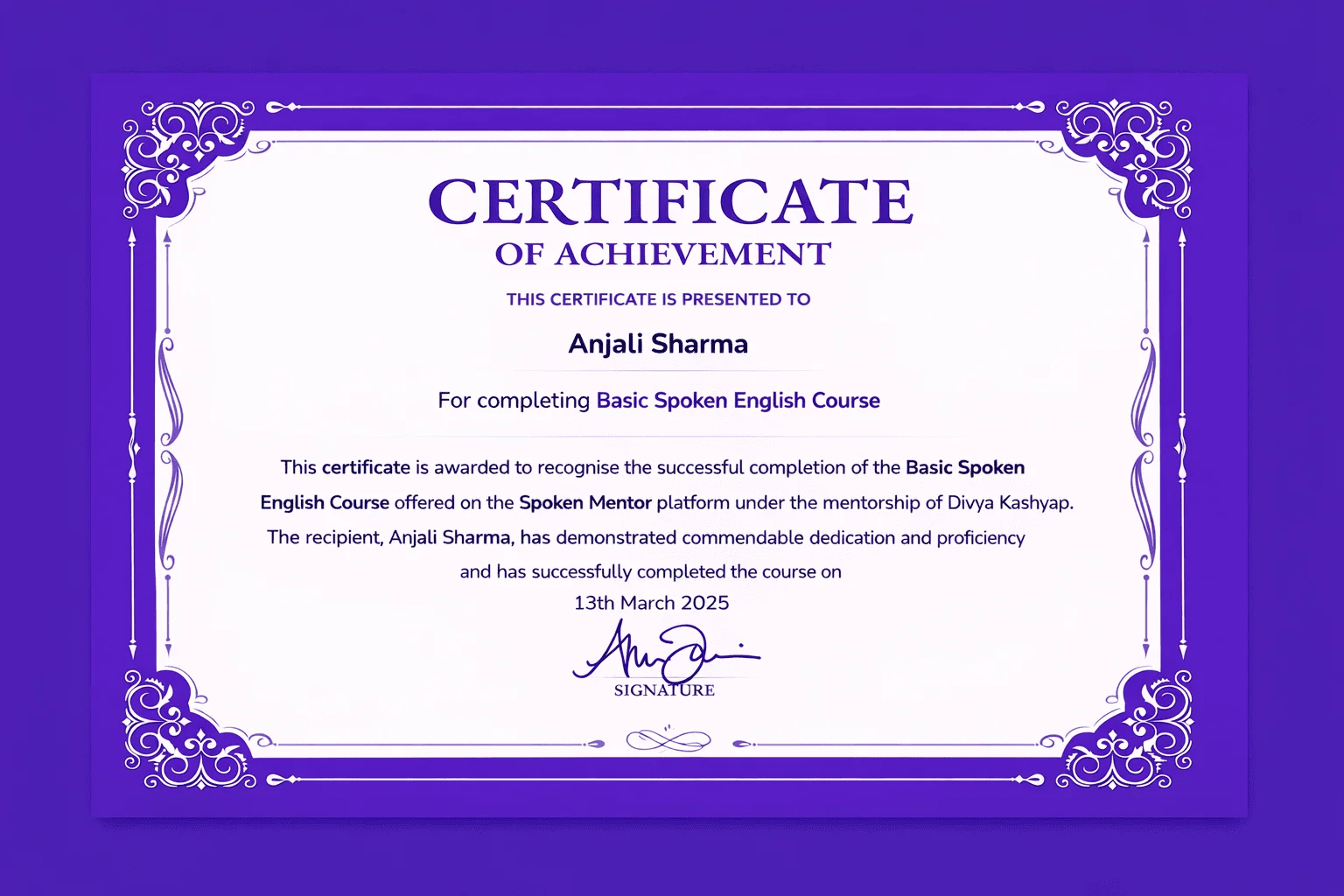 I joined Spoken Mentor’s spoken English classes online and saw improvement within weeks. The daily corrections, real conversation practice, and personal guidance helped me speak confidently. This is perfect for anyone looking to improve English speaking quickly.